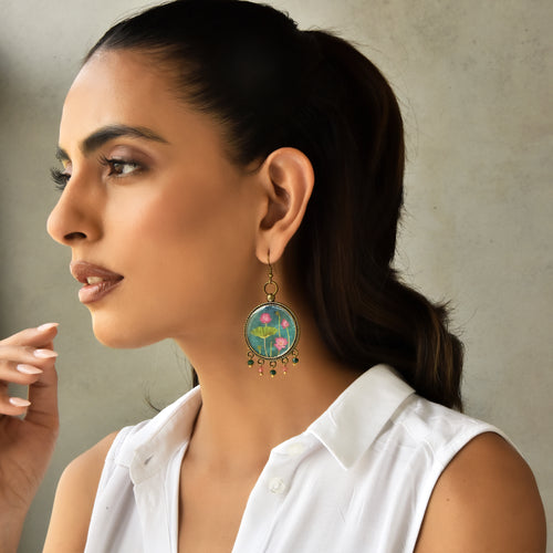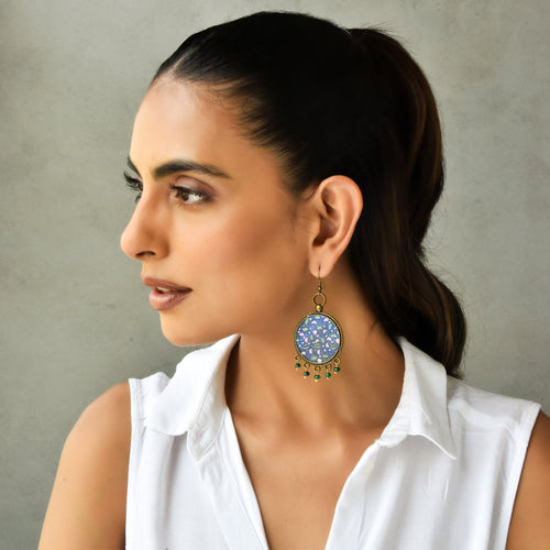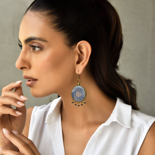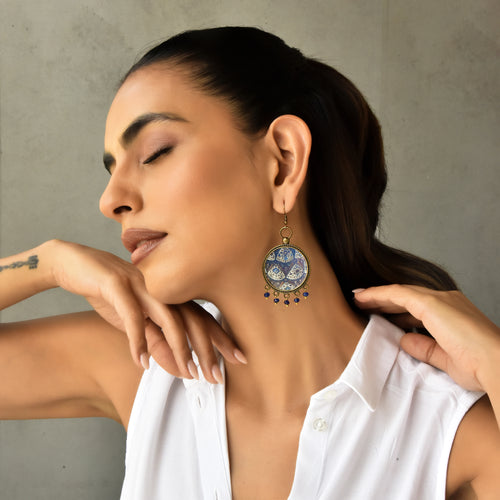 Balis with semiprecious stone - Mughal Motifs Blue Tiles
