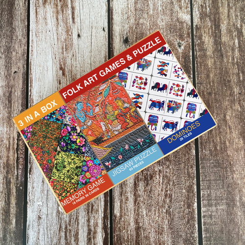 3 in One Box -Madhubani Memory Game | Patachitra Jigsaw Puzzle | Gond Dominoes
