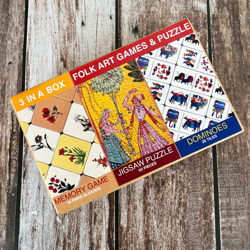 3 in One Box - Madhubani Memory Game | Kashida Jigsaw Puzzle | Gond Dominoes