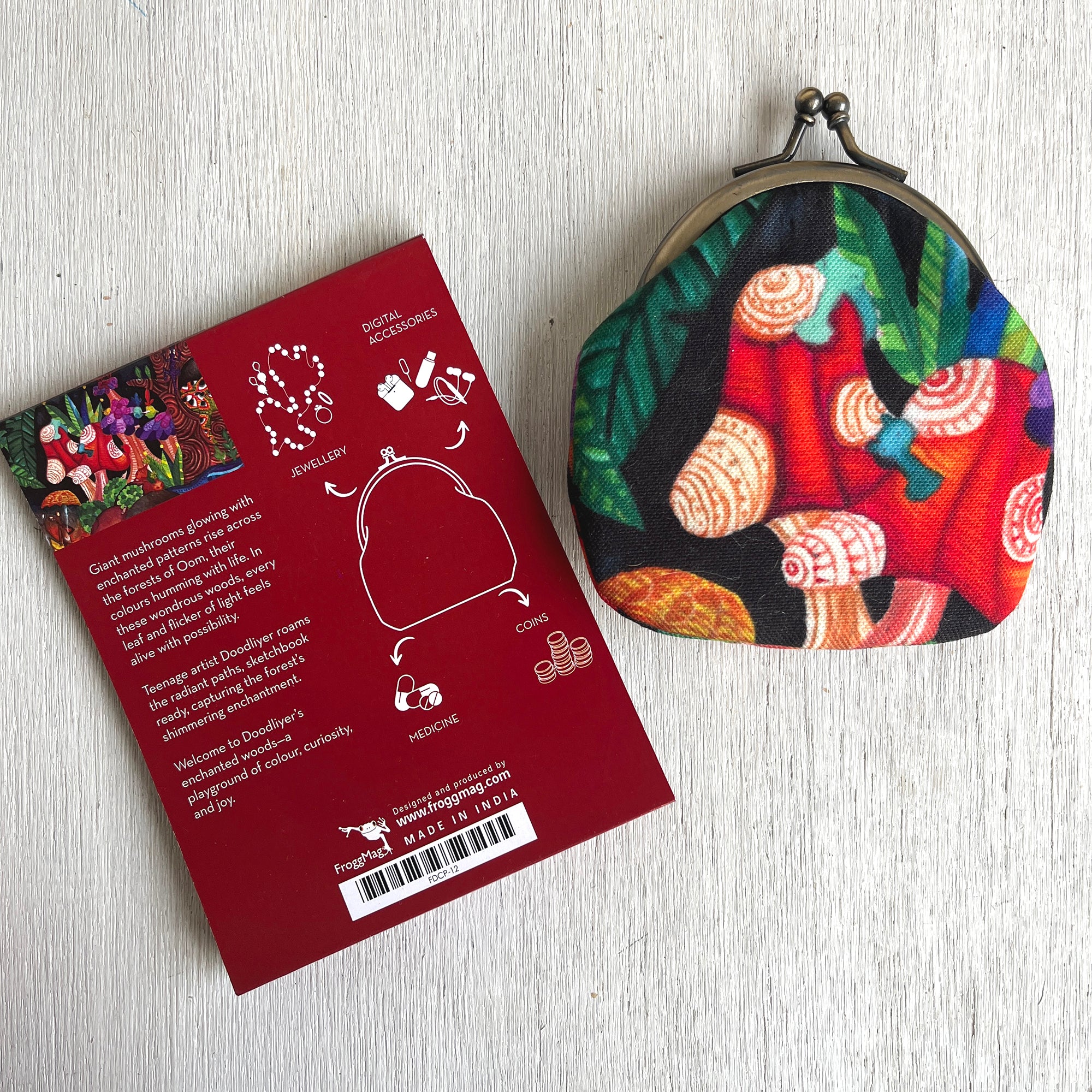 These purses made of printed canvas can be used to store multiple things. The inside made of soft yet durable satin makes it perfect for storing jewellery or keeping digital accessories.