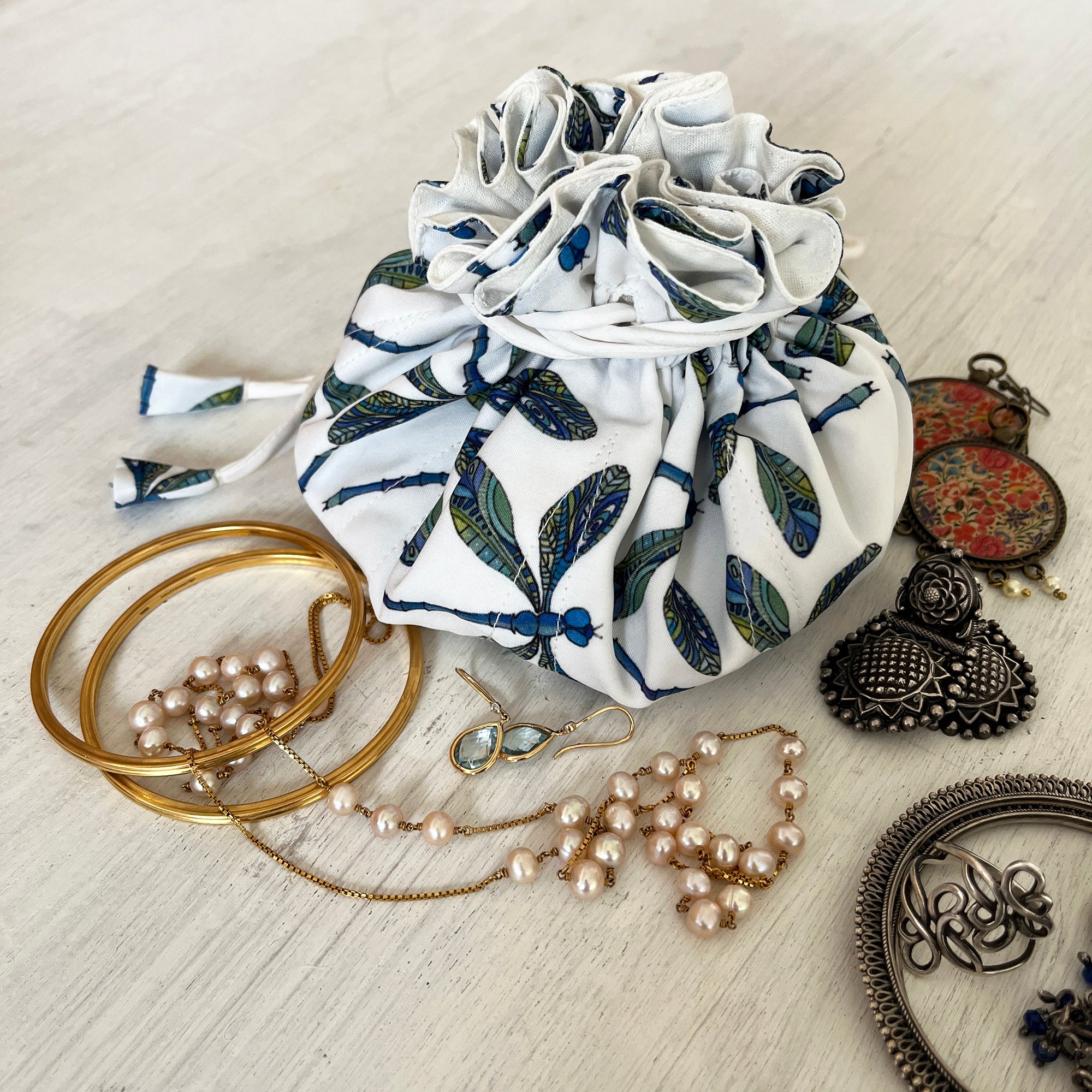 Your jewellery’s favorite travel companion. Keep every sparkle safe, organized, and in its place. Whether you are navigating a busy commute or jetting off on a getaway, this potli ensures your treasures stay protected with effortless grace.
